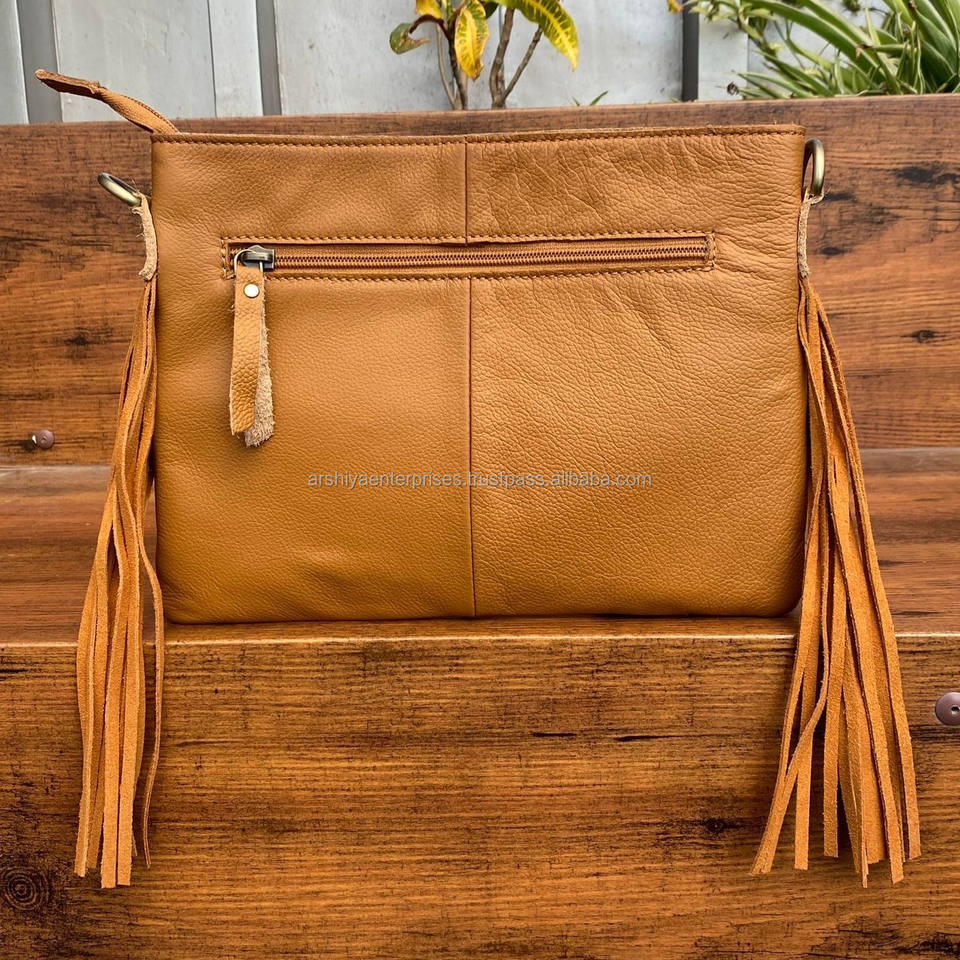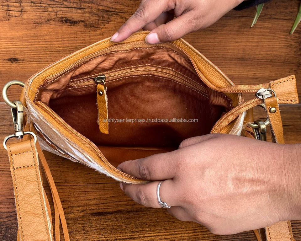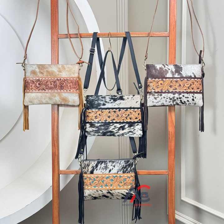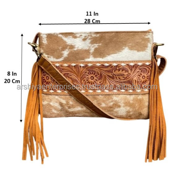 Product name:Hand Tooled Cowhide Leather Fringe Crossbody Bag