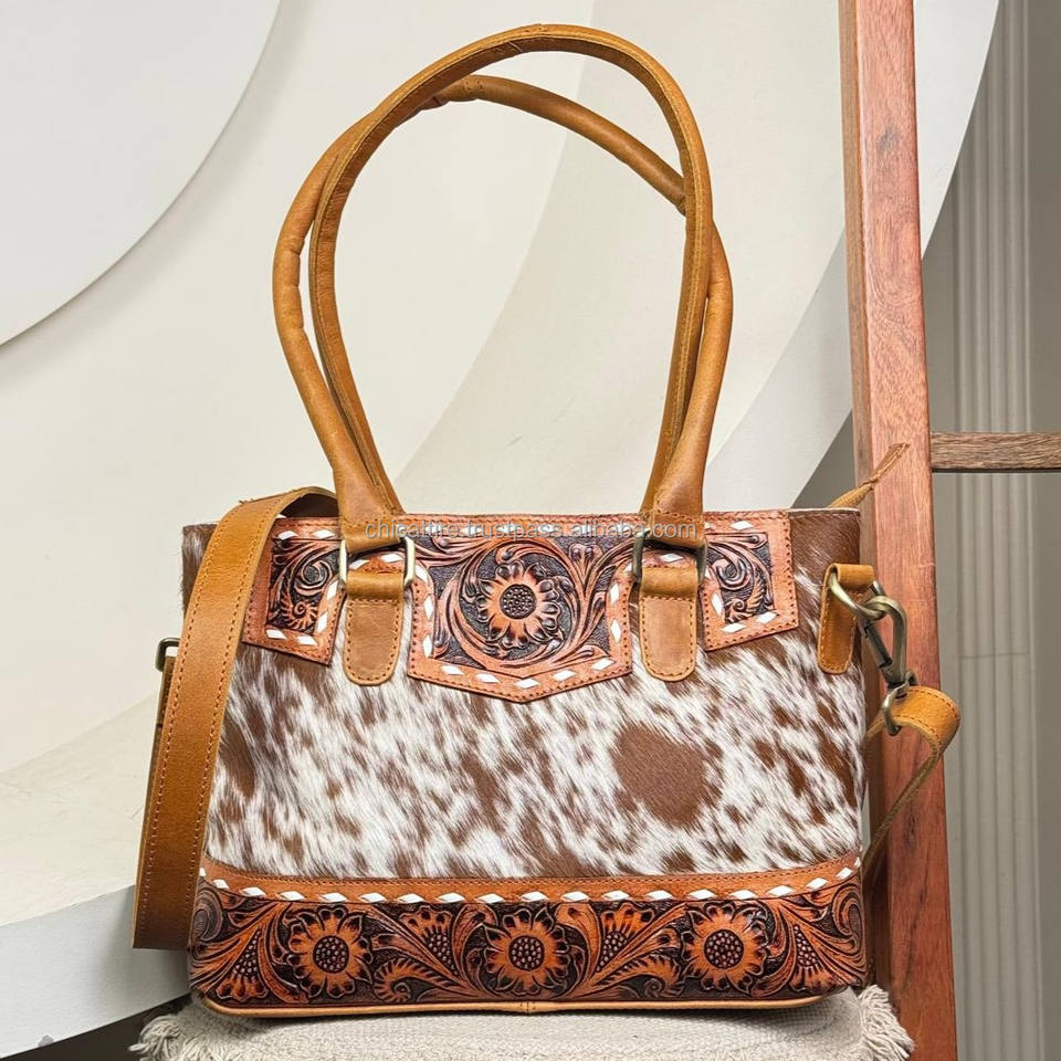 Wholesale Hand Tooled Leather Concealed Carry Tote Bags for Women Cowhide Crossbody Shoulder Bags Genuine Leather Luxury Handbag