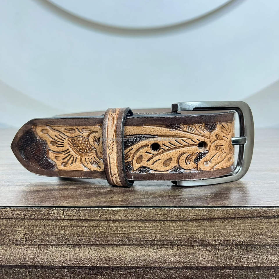 Wholesale Hand Tooled Leather Kids Belt Durable Genuine Cowhide for Boys & Girls Adjustable Western Style Children's Accessories