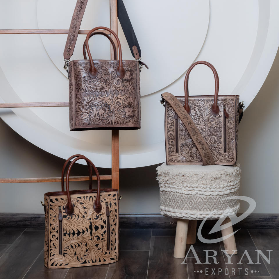 Wholesale Hand-Tooled Leather Tote-Crossbody Bag Western Cowhide Leather Concealed Carry Purse Genuine Leather Women Satchel Bag