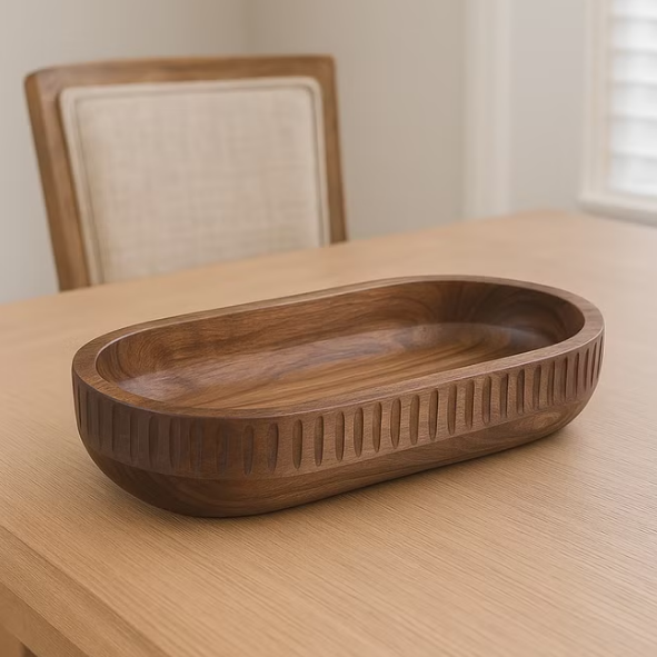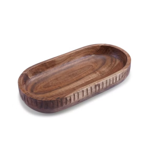 Wholesale Handcrafted Acacia Wood Oval Serving Bowl Natural Wooden Fruit Snack Bowl Decorative Rustic Kitchen Tray