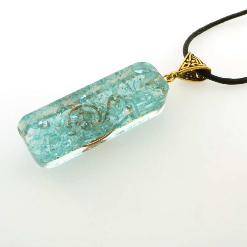 Wholesale Handcrafted Aquamarine Resin Pendant Feng Shui Style with Gold Spiral and Knot Detail EMF Protection Crystal Jewelry