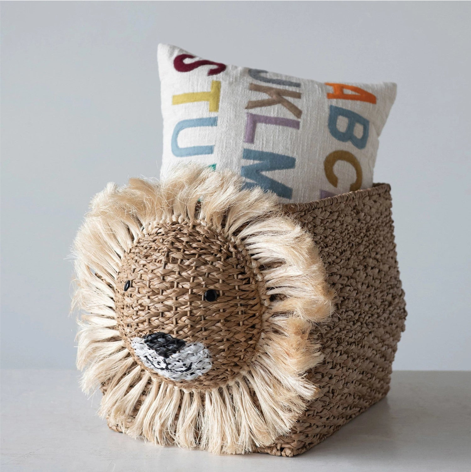 Wholesale Handcrafted Basket Braided Water Hyacinth Animal Cartoon Handwoven Water Hyacinth Lion Basket Decor Baby Room Nursery