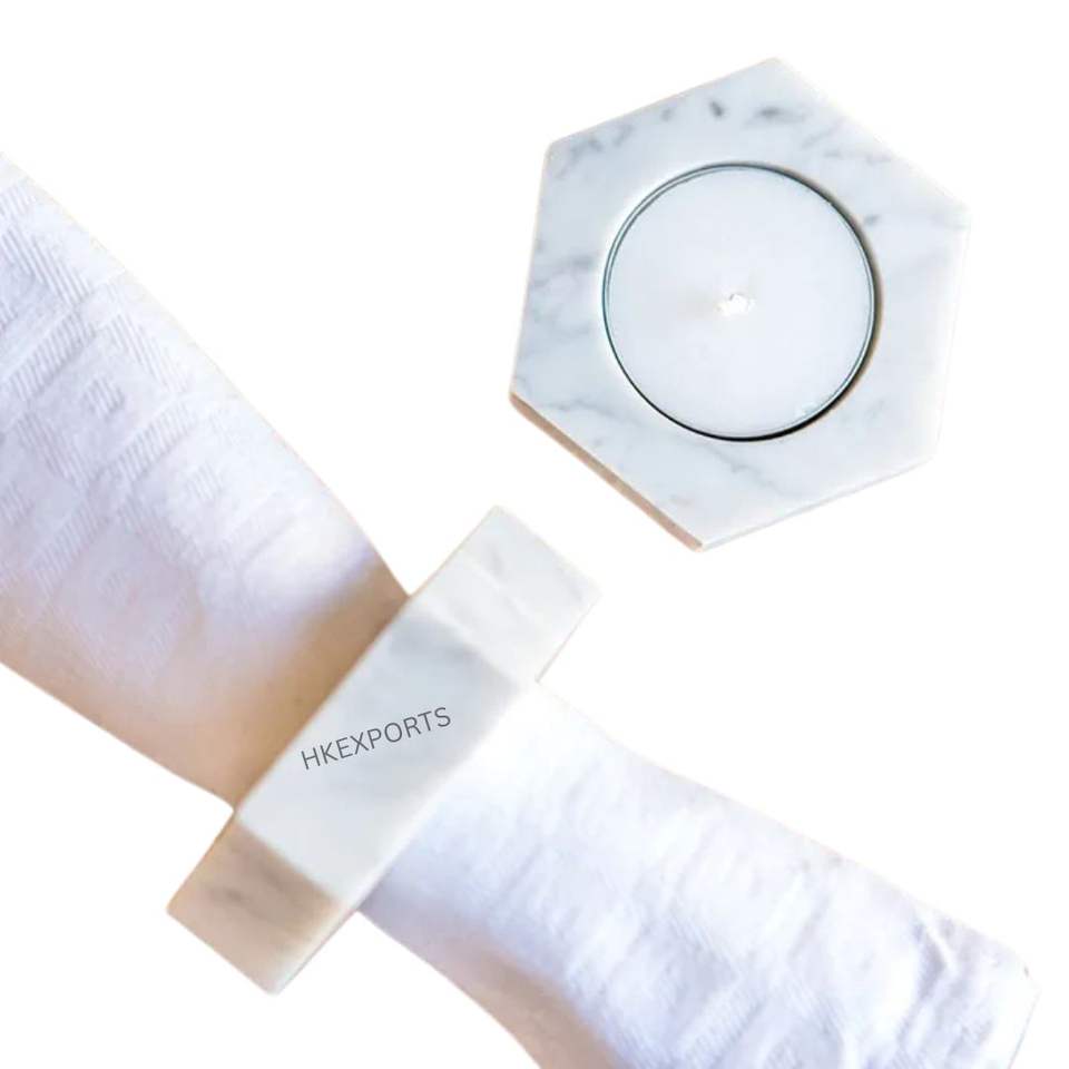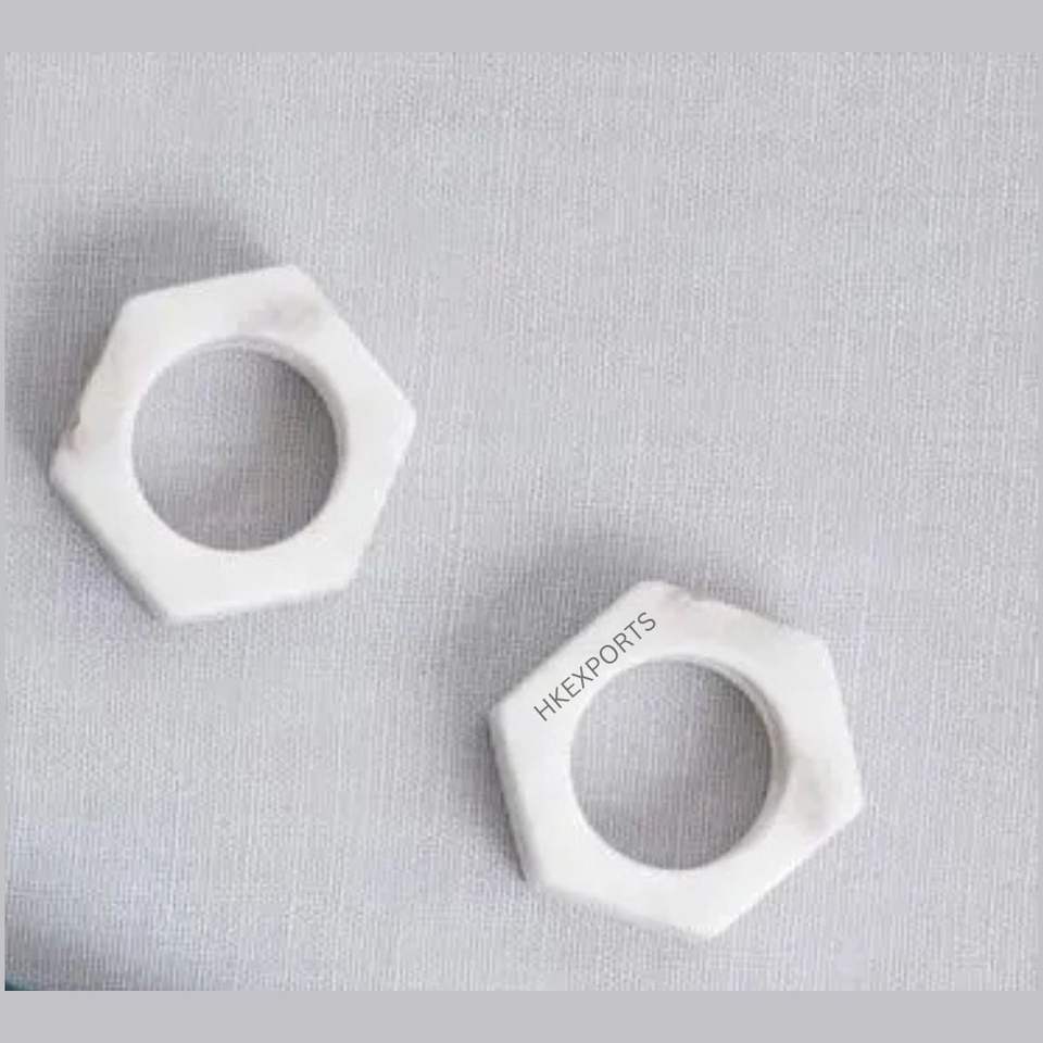 Wholesale Handcrafted Hexagonal White Marble Napkin Ring for Luxury Dining Table Decor