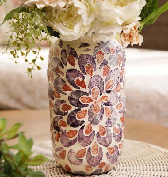Wholesale Handcrafted Modern Mother of Pearl Inlay Flower Vase Home Decor Luxury Flower Vase Tabletop Decor Flower Vase