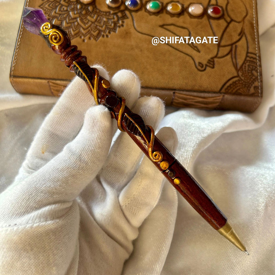Wholesale Handcrafted Wooden Pen with Natural Amethyst Point | Crystal Wand Pen for Writing, Reiki Healing & Energy Work