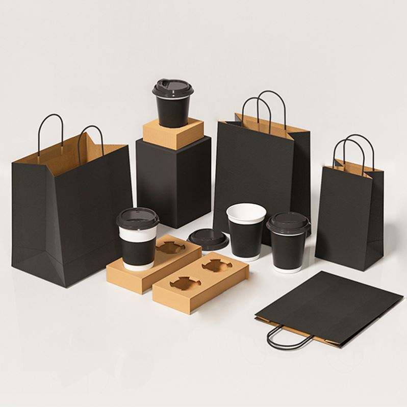 Wholesale Handle Kraft Paper Bag Custom Printing Food Takeaway Packaging Tote Craft Paper Bag Takout Kraft Paper Handle Bags