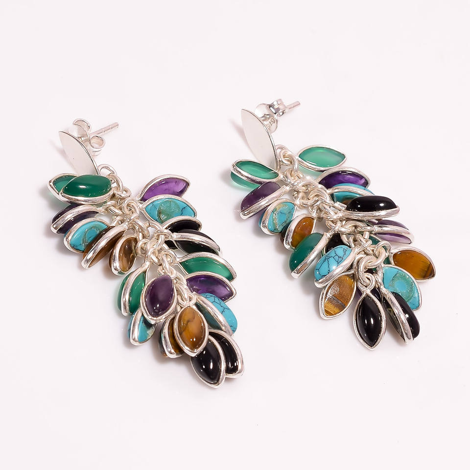 Wholesale Handmade 925 Sterling Silver Stud Earrings Natural Wending Silver Jewelry with Marquise Shape Gemstone Classic Style