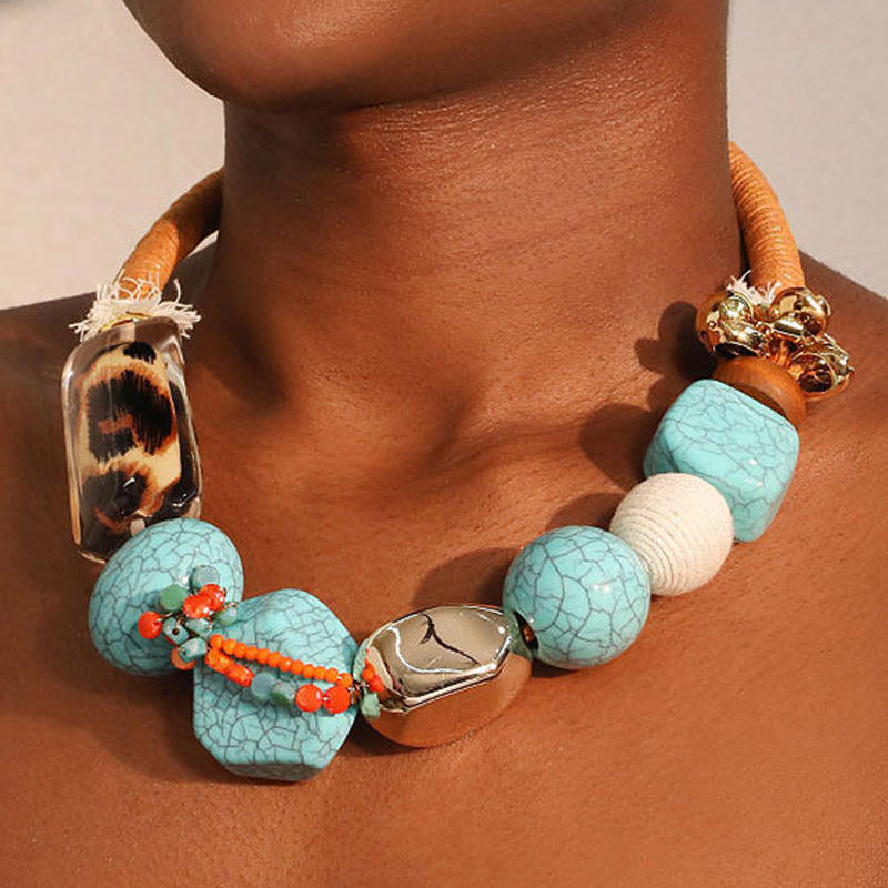 Wholesale Handmade Artificial Turquoise Acrylic Leopard Print Women Necklace Earrings Fashion Jewelry Set Necklace