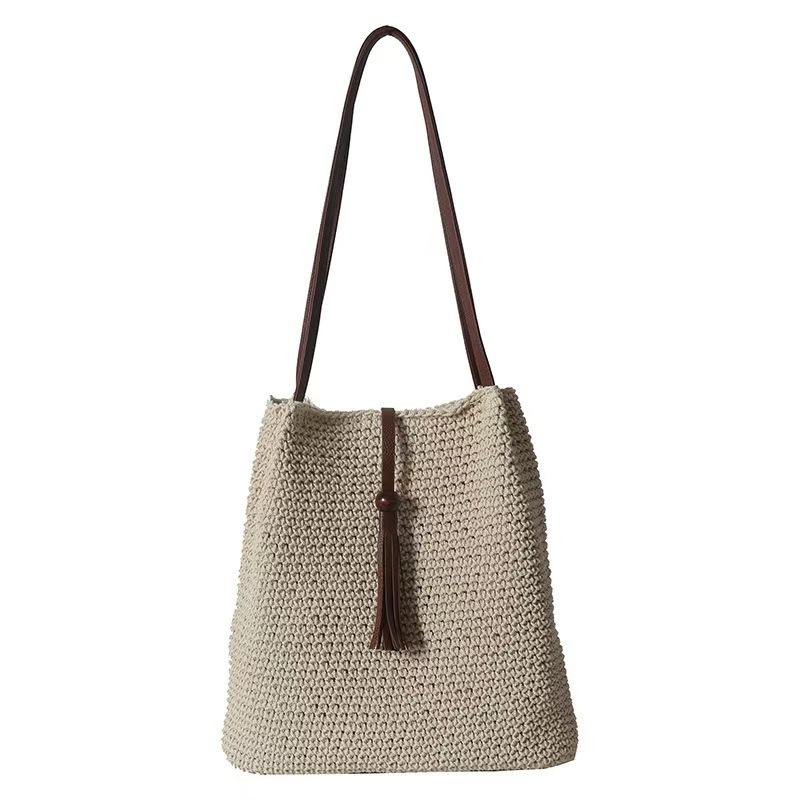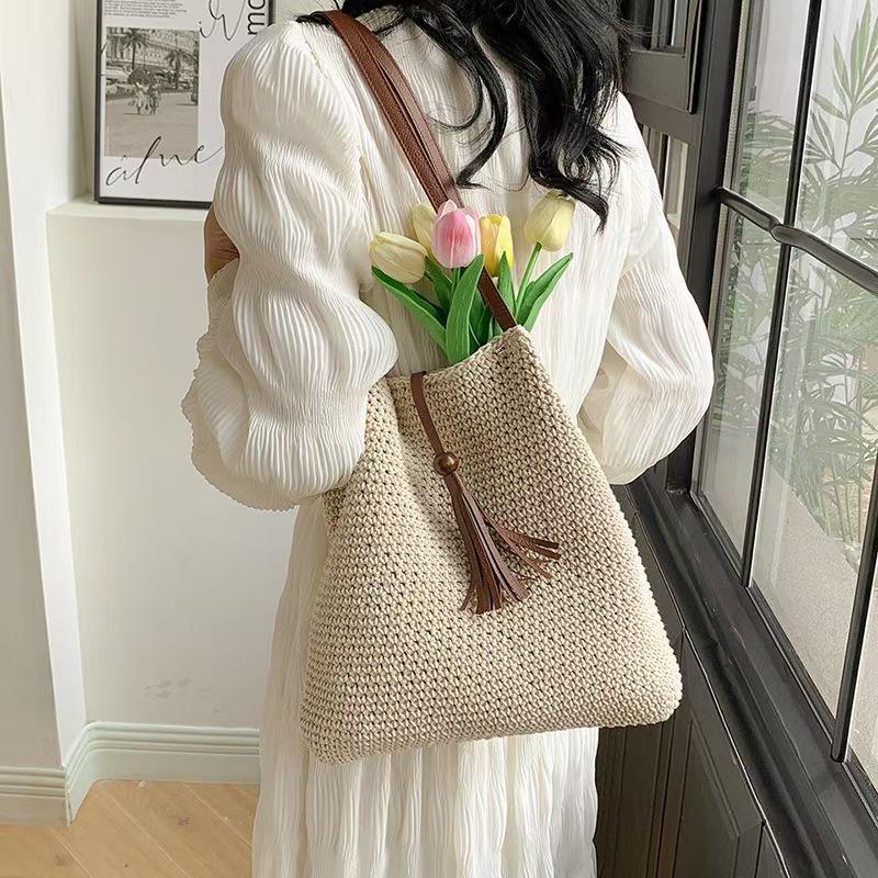 Wholesale Handmade Cotton Thread Crochet Beaded Tassel Cross-Border Trendy Single Shoulder Handheld Crossbody Bag for Women
