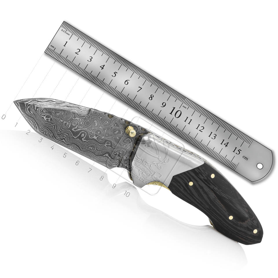 Wholesale Handmade Damascus Steel Dual Blade Folding Pocket Knife DD-FK-853 Exotic Rosewood Handle for Bushcraft Tactical Use