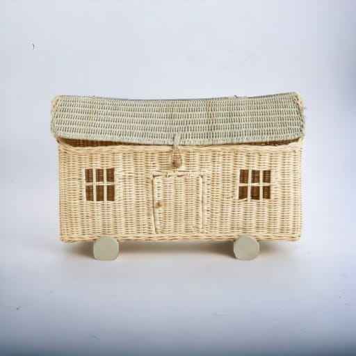 Wholesale Handmade Eco-Friendly Rattan Wicker House Shape With Window Wicker Basket Toy House for Kids With Wheels and Lid