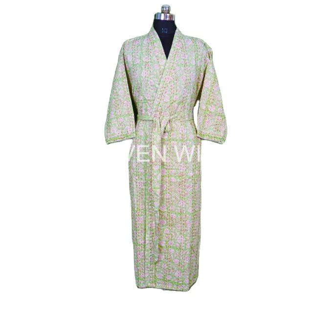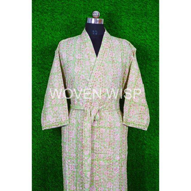 Wholesale Handmade Eco-Friendly Windproof Cotton Quilted Women's Kimono Jacket Floral-Printed V-Neck Breathable Crocheted Weave