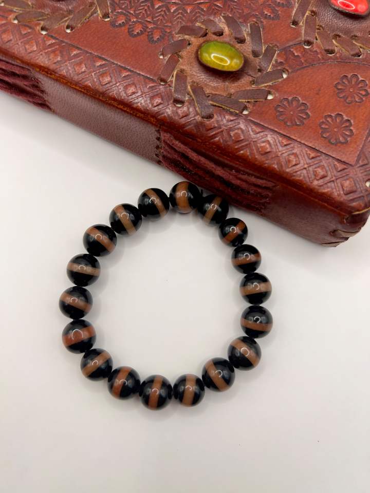 Wholesale Handmade Elastic Stretch Energy Bracelet Natural Black Onyx-Brown Banded Agate Beaded Jewelry Healing Crystal Gift