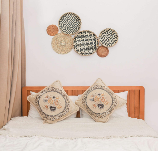 Wholesale Handmade Flat Bamboo Basket with Black Pattern Woven Decorative Tray for Wall Art Serving & Storage