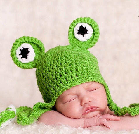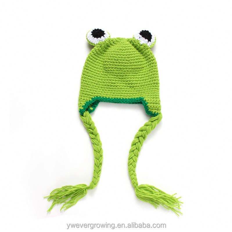 Wholesale Handmade Frog Crochet Winter Warm Plush Kids Knitted Hats Baby Beanie Hats