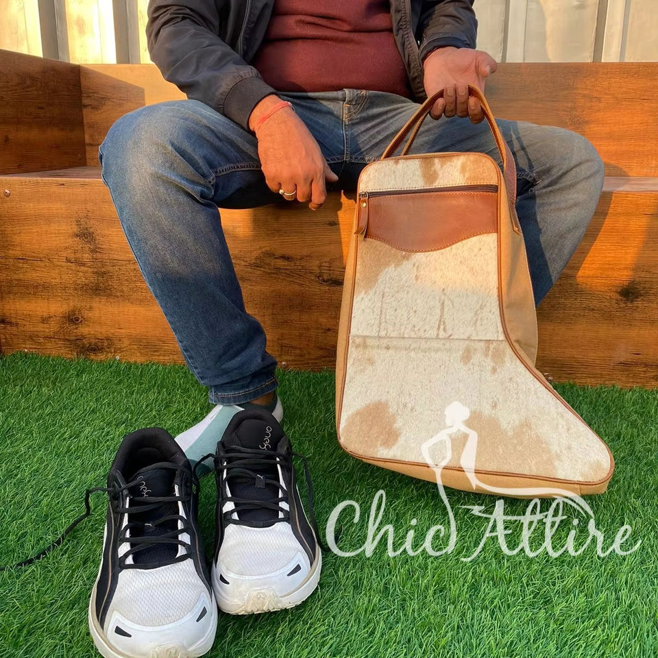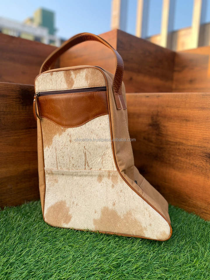 Wholesale Handmade Hair on Cowhide Leather Shoe Bag for Unisex Personalized Custom Genuine Leather Hiking Boot Bags for Travel