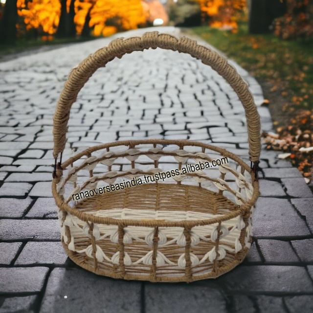 Wholesale Handmade Metal Iron And paper Rope Woven Basket