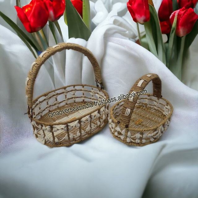 Wholesale Handmade Metal Iron and Paper Rope Woven Elegant Eco-Friendly Oval Gift Hamper Basket for Wedding Birthday Party Gifts