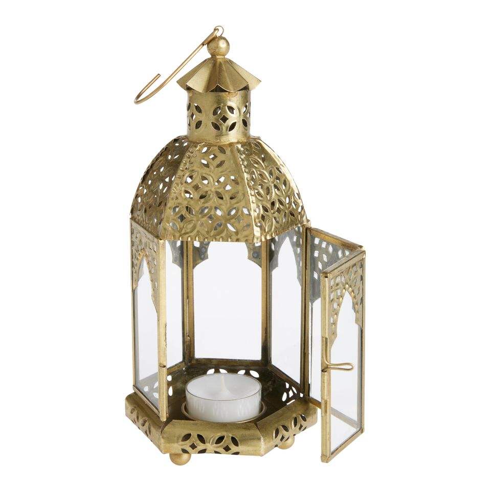 Wholesale Handmade Moroccan Style Decorative Gold Lanterns with Clear Glass for Hanging and Tabletop Decoration Available