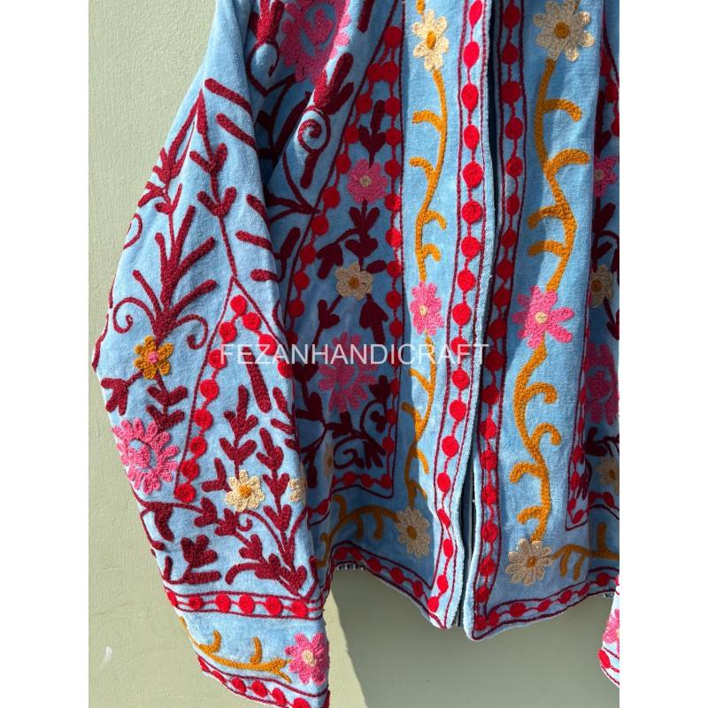 Wholesale Handmade Quilted Velvet Jacket with Floral Embroidery Stand Collar Cotton Lining-Women's Winter Regular Length