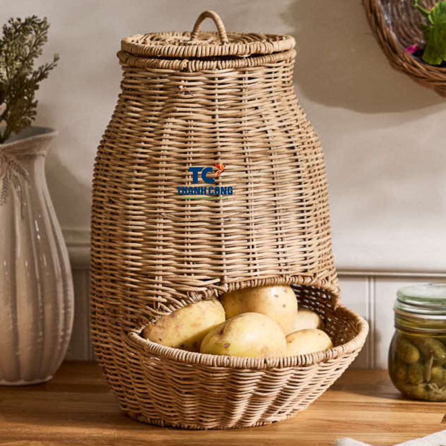 Wholesale Handmade Rattan Basket for Potato and Onion Storage Natural Kitchen Organizer from Vietnam Supplier