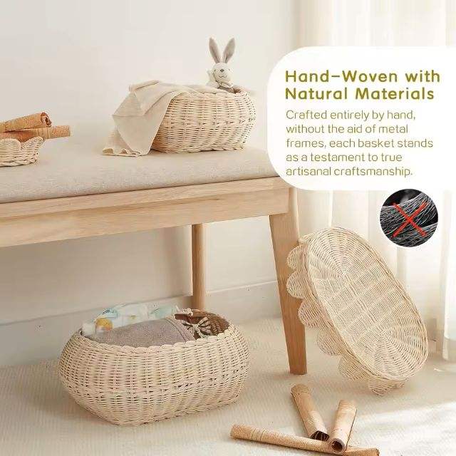 Wholesale Handmade Rattan Toy Storage Baskets Eco Friendly Durable Lightweight Organizer for Nursery Rooms Hotels