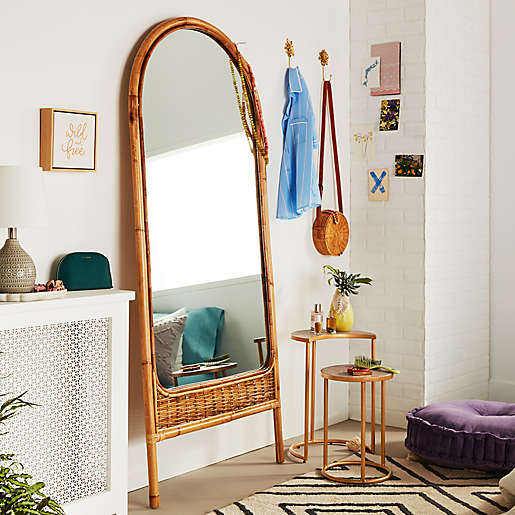 Wholesale Handmade Rattan Wicker Arch wings Stand Mirror Full Length Full Body From Vietnam/ SISU/ RMA-006