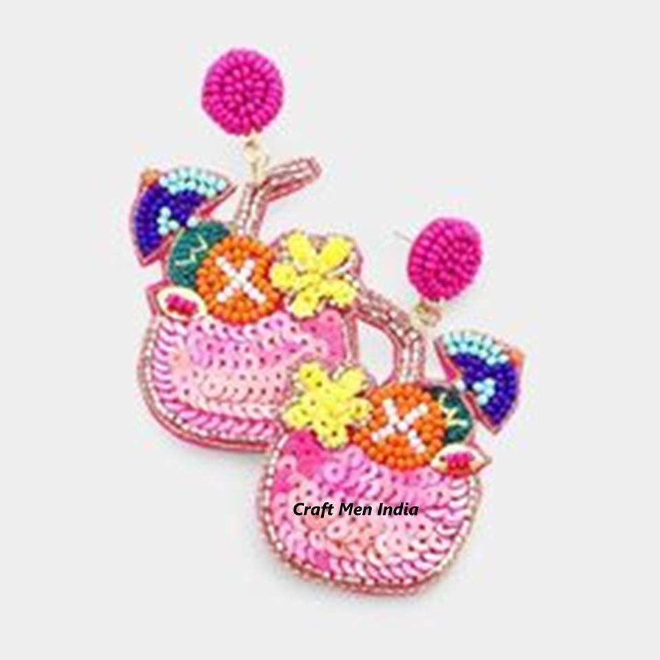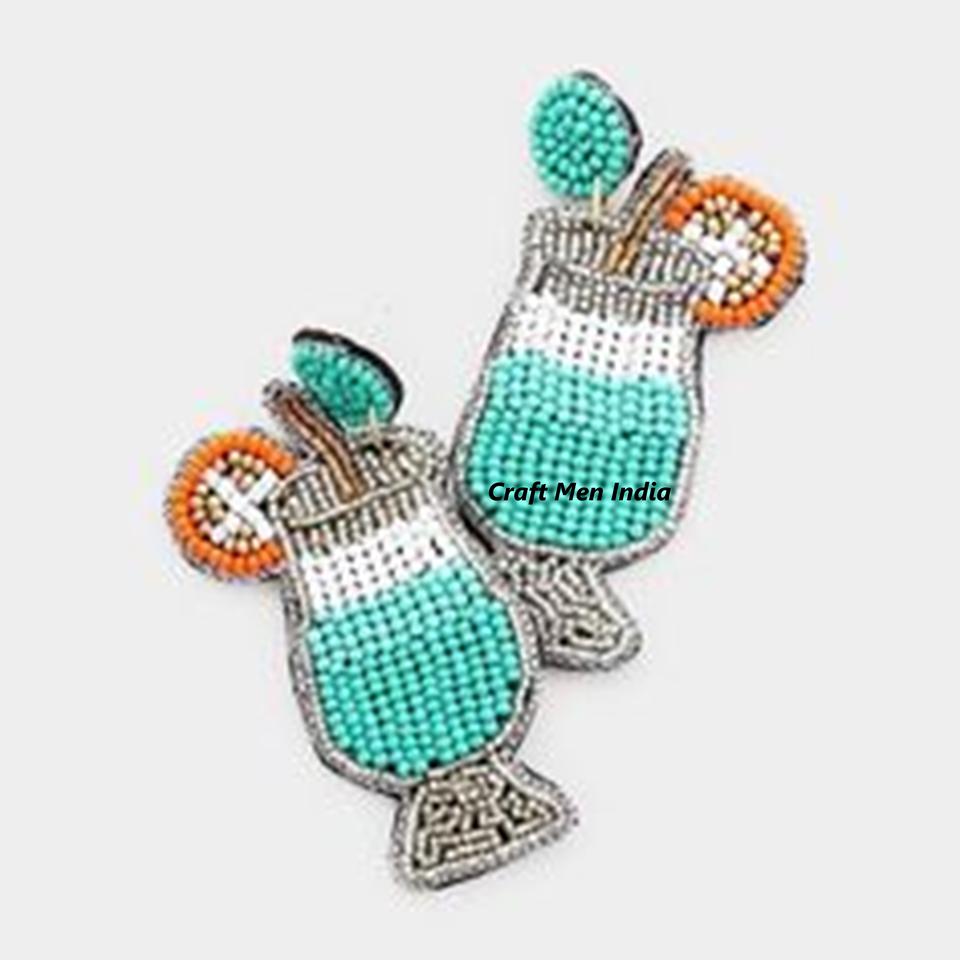 Wholesale Handmade Rice Bead Earrings Bohemian champagne Wine Bottle Earrings Tequila Vodka Pendant Statement Earring Women
