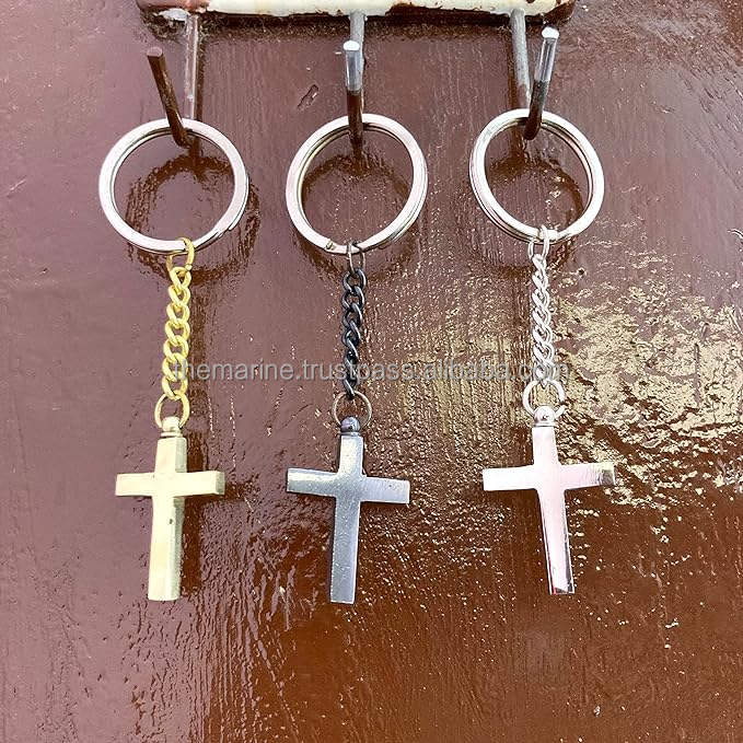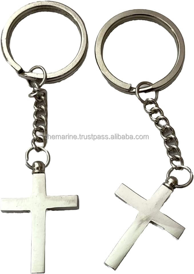 Wholesale Handmade Set of 3 Cross Key Chain Baptism Brass Christian Cross Key Ring Religious Souvenir Key Chain Gift