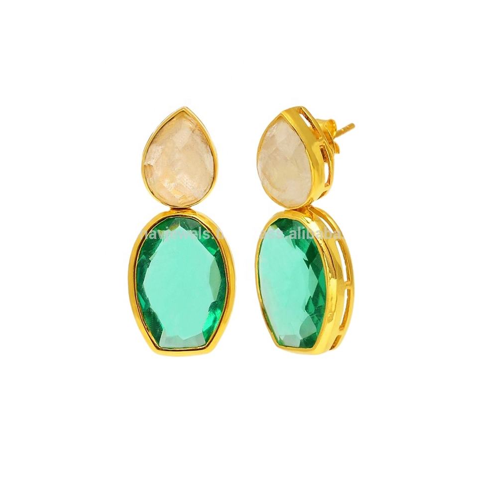 Wholesale Handmade Stud Earrings Fine Fluorite Gemstone Gold Plated Dainty Vintage Fancy Dangle Jewelry for Anniversary
