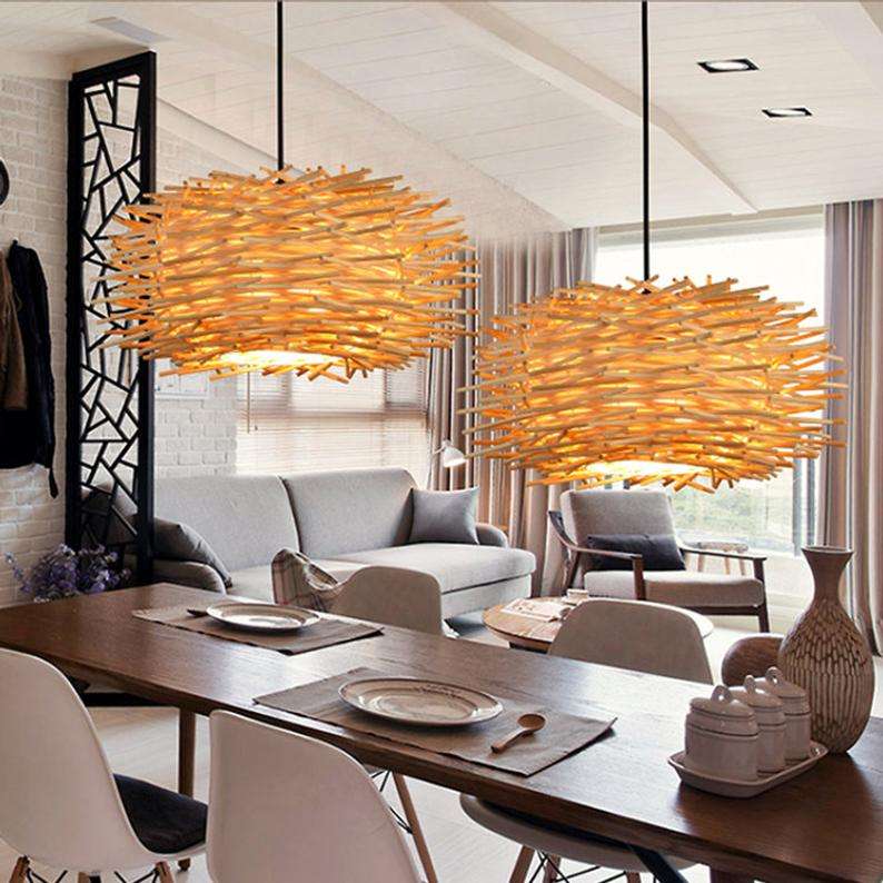 Wholesale Handmade Wicker Rattan Lamp Shade Farmhouse Pendant Light Rattan Hanging Fixture Bamboo Chandelier Decor Living Room