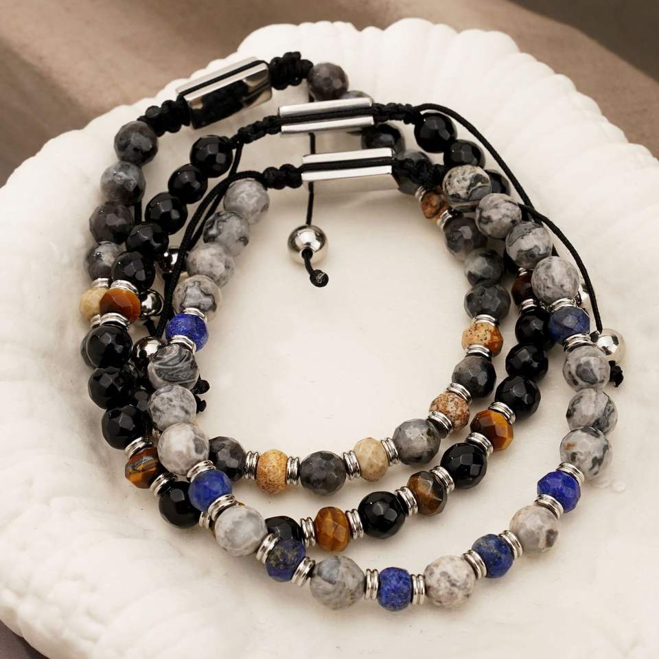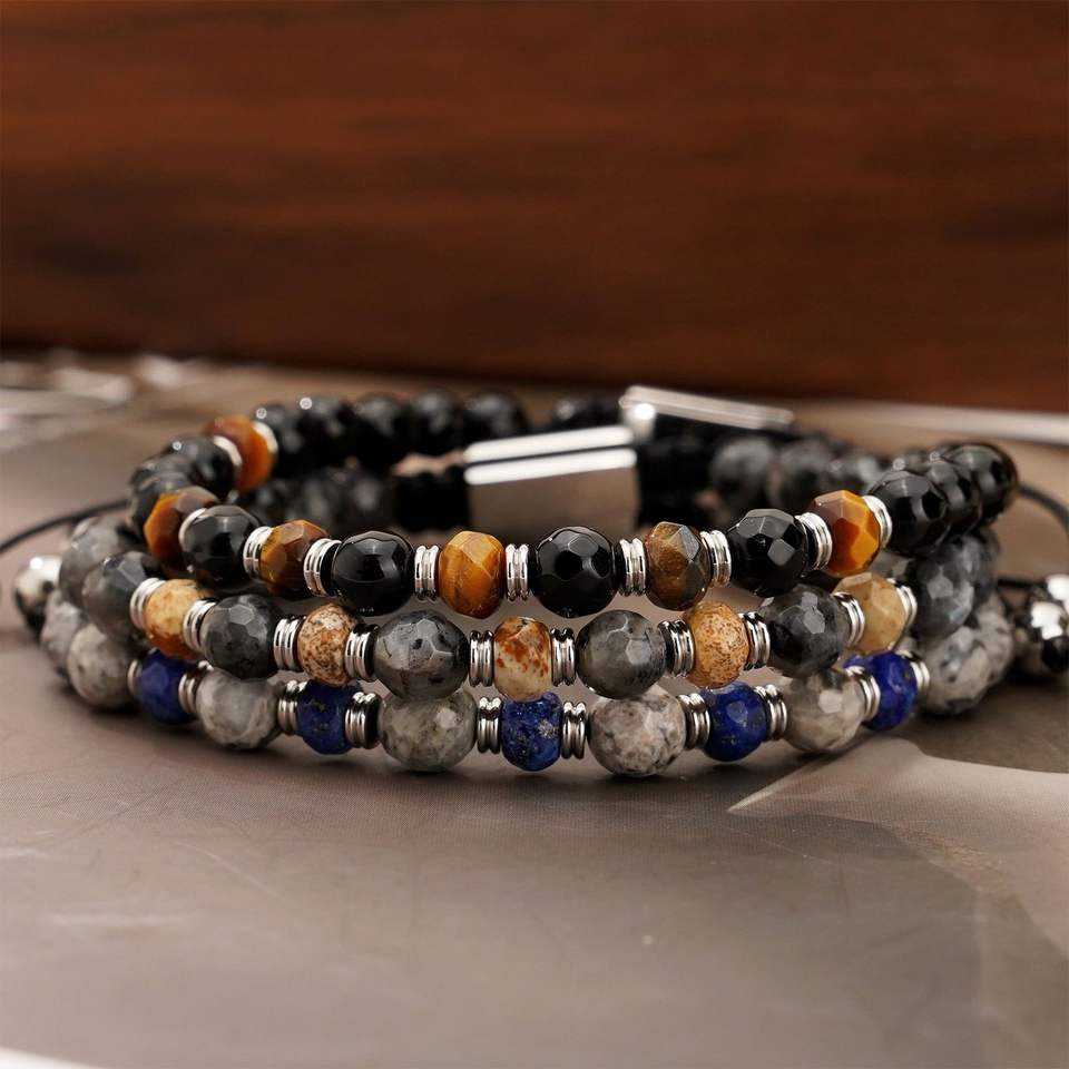 Wholesale Trendy Handmade Woven Lapis Lazuli Beaded Adjustable Tiger Eye Natural Stone Bracelet Unisex Gift