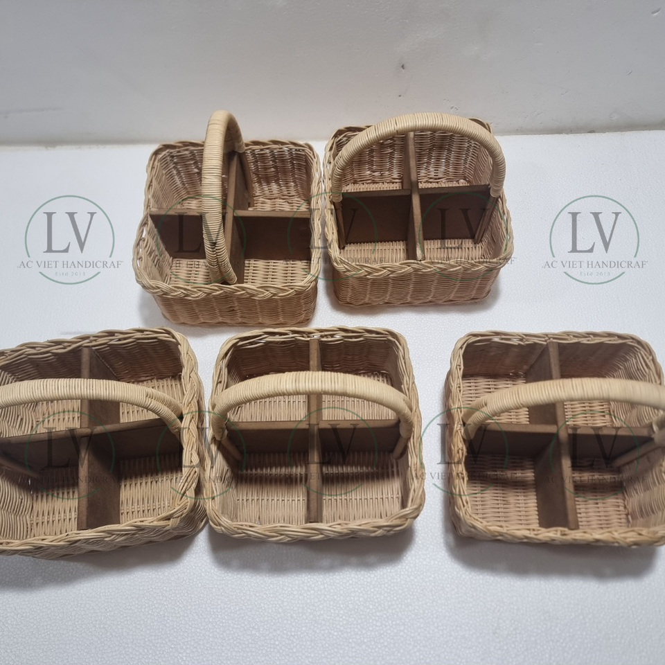 Wholesale Handwicker Rattan Cutlery Holder From Vietnam Eye-catching Tableware for Restaurant Kitchen Storage Cutlery Caddy