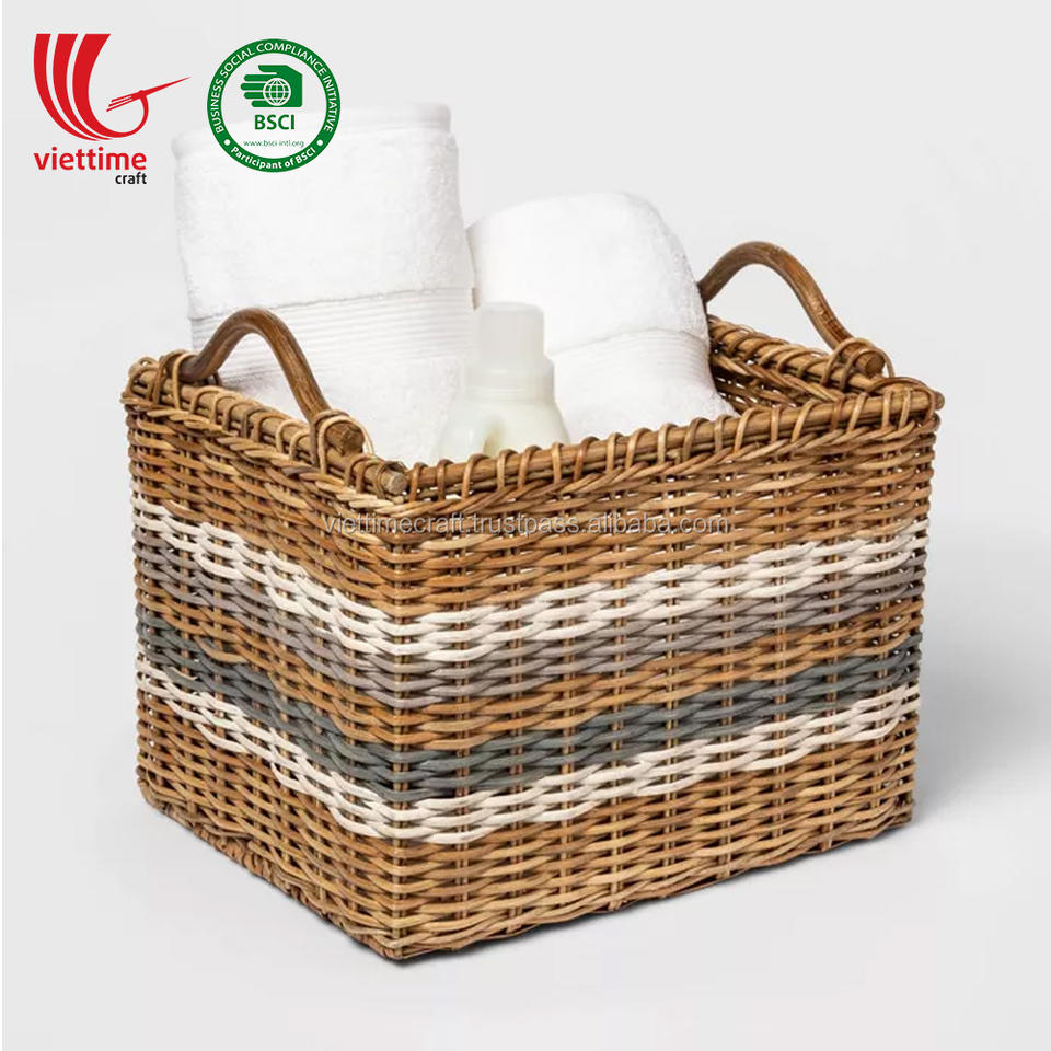 Wholesale Handwoven Multifunctional Rattan Storage Basket Unique Colorful Design for Kitchen and Home Use Bulk in Vietnam