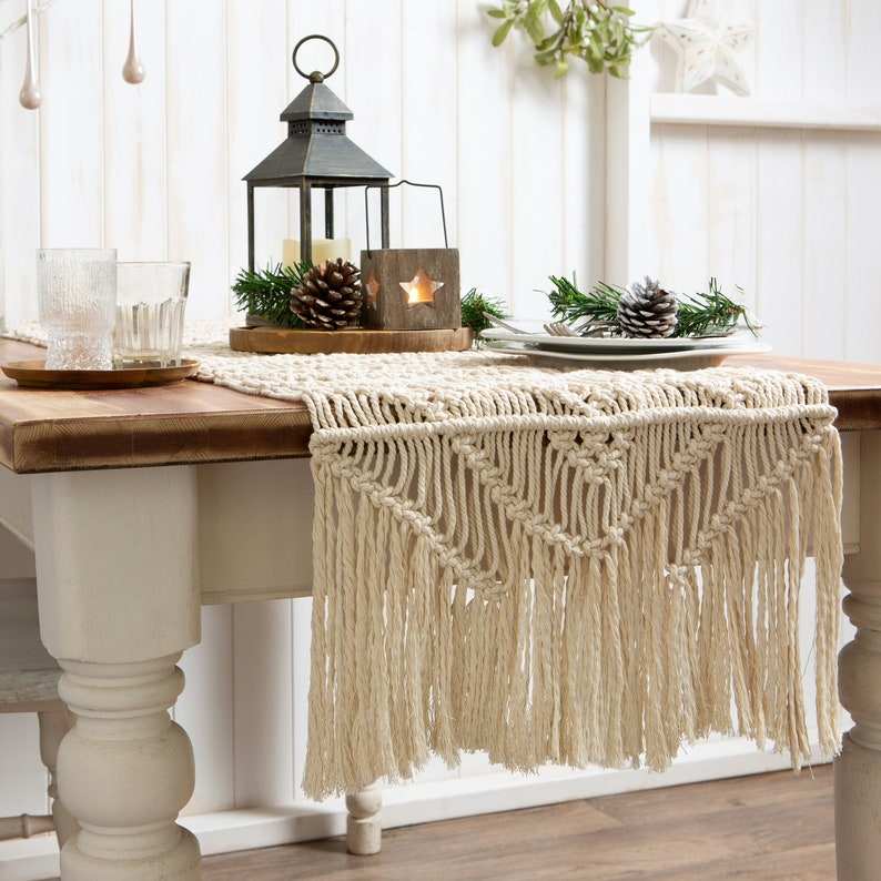 Handmade Cotton Macrame Table Runner for Wedding Decor Bed End Lace Tassel Runner Wholesale India