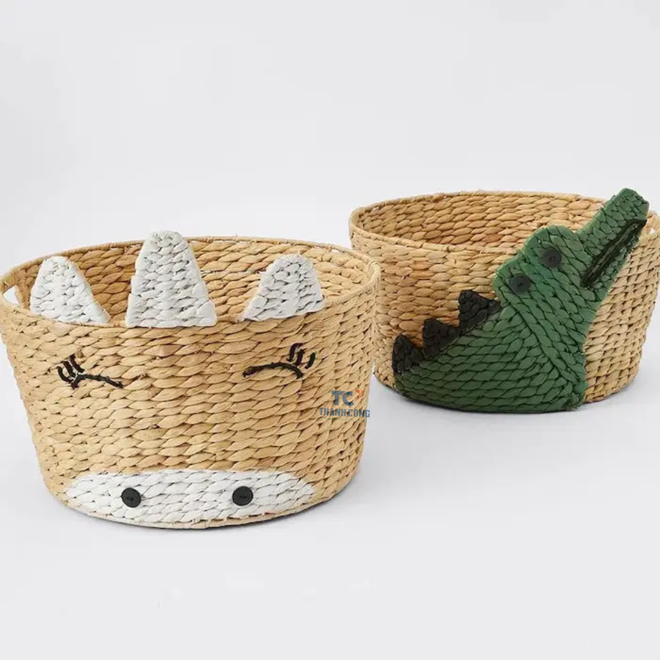 Wholesale Handwoven Wicker Animal Shaped Baskets Water Hyacinth Lovely Kids Storage Basket With Animal Figures