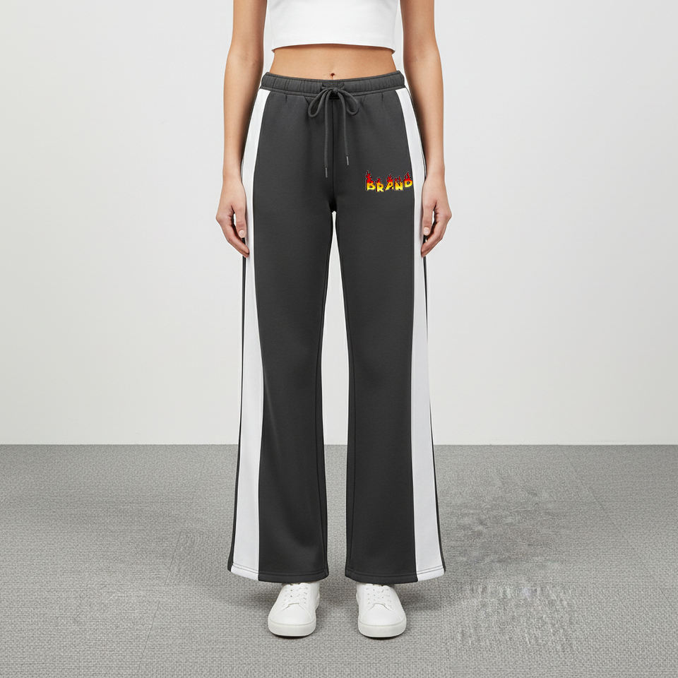 Wholesale Winter Heavy Cotton Fleece Ladies Sweatpants Custom DTF Printed Logo Over-sized Side Panels Hip Hop Trouser