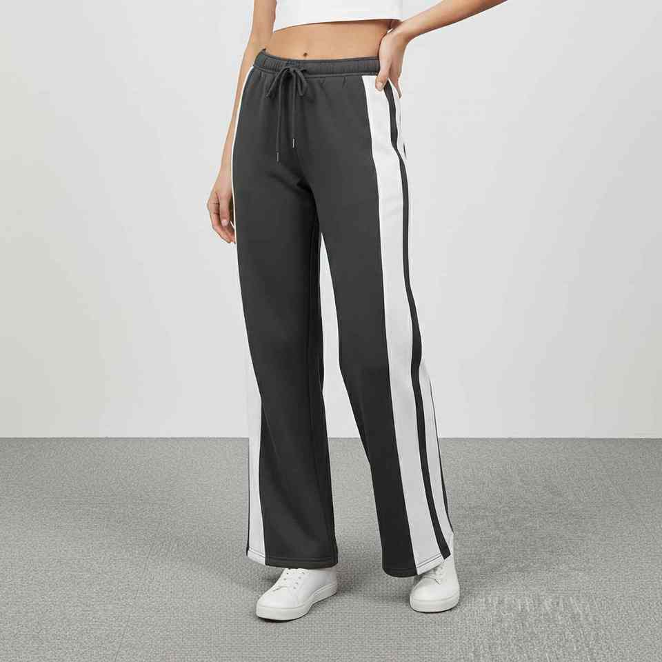Wholesale Heavy Cotton fleece Ladies Sweatpants Custom DTF Printed logo Over-sized with side panels hip hop ladies trouser