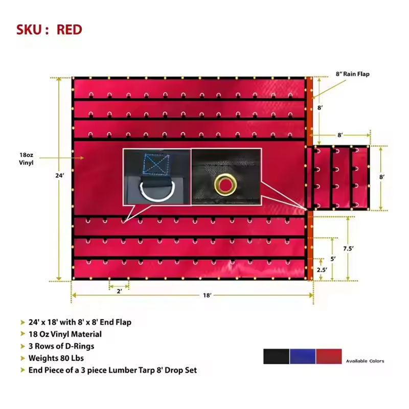 Wholesale Heavy Duty 18oz Trailer Tarp Ripstop Parachute Waterproof Flatbed Vinyl Truck Lumber Tarps