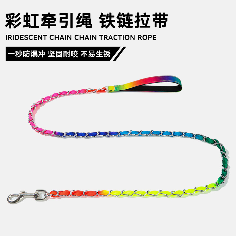 Wholesale Heavy Duty Snake Chain Pet Dog Chain Leash and Collar rainbow