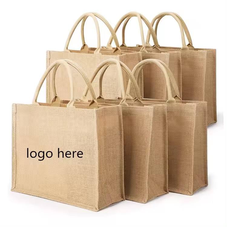 Wholesale Heavy hold support Jute bag OEM Customized printing waterproof jute bag tote with inner lamination jute bag shopping