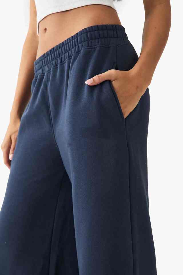 Wholesale Heavyweight Polyester/Cotton Women's Sweatpants High Quality 300gsm Flat Straight Leg Baggy Flared Lace Winter High