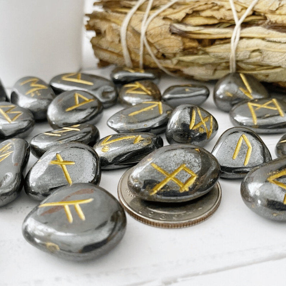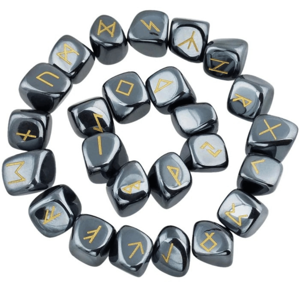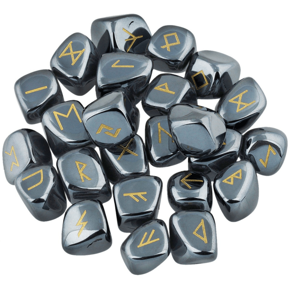 Wholesale Hematite Tumbled Rune Set Engraved Crystal Runes for Healing Divination Feng Shui and Carved Tumbled Gemstones