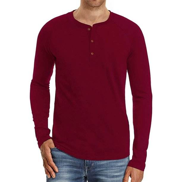 Product Name:Custom Long Sleeve T Shirt Men's Henley T Shirts Wholesale