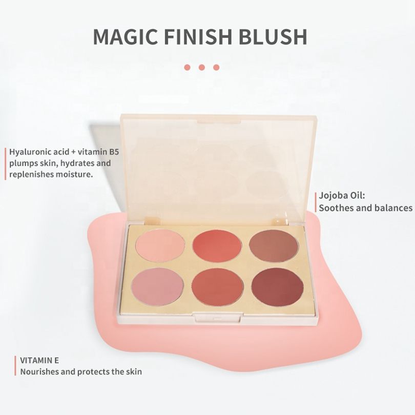 Wholesale Herbal 6 Colors Matte Shimmer Silky Blusher Palette Powder Natural Effect Cheek Contour Blush Highlighter Fair Face