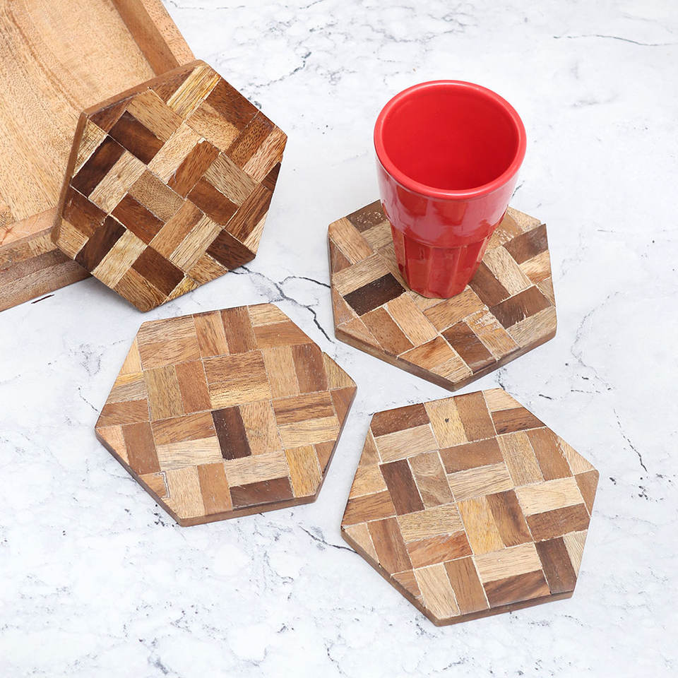 Product name:Hexagon Brown Wooden Coasters