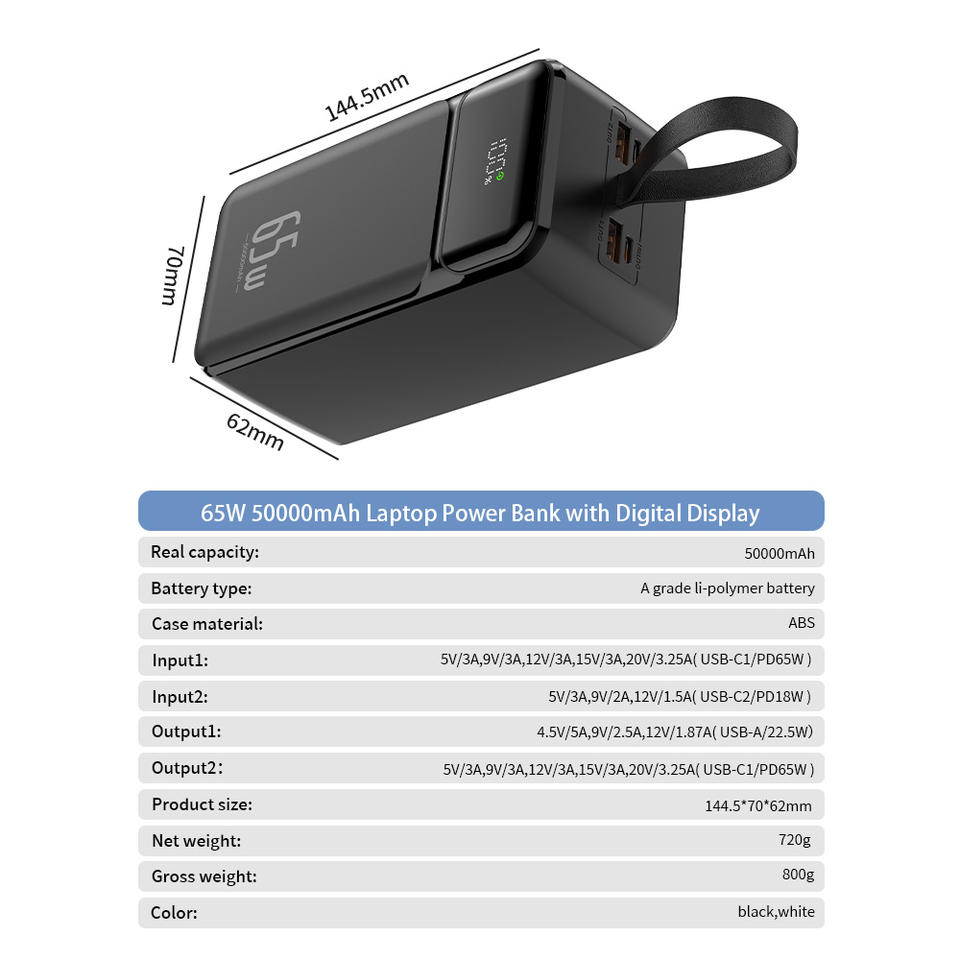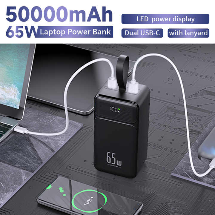 Wholesale High Capacity LED Display PD 65W Powerbank Outdoor Portable Charge Laptop 50000mAh Power Bank