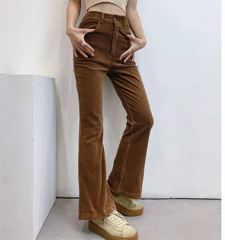 Wholesale High End Corduroy Flared Pant Women Trousers High Waist Trendy Casual Pants