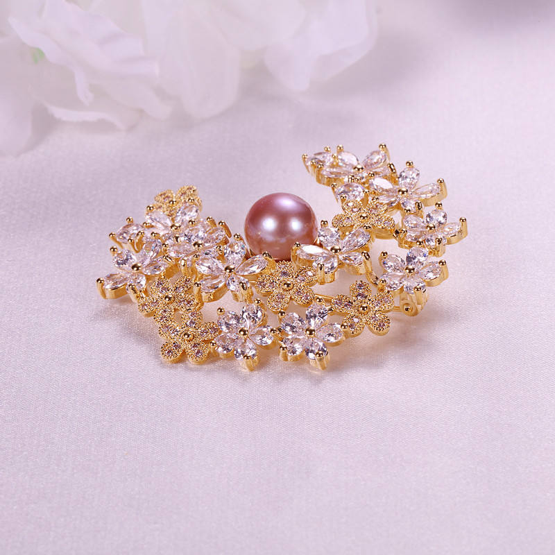 Wholesale High-End Fashionable Women's Brooches Rhinestone Scarf Anti-Glare Buckles Chest Flower Pins Freshwater Pearl